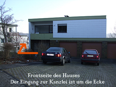 Sie dann die Treppe nach unten bis Sie mein Kanzleischild sehen.